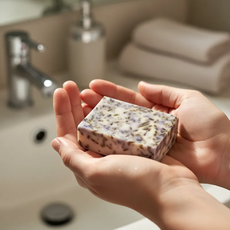 O sabonete artesanal de lavanda oferece benefícios como propriedades relaxantes e calmantes, ideais para aliviar o estresse e a ansiedade, além de benefícios para a pele. Ele limpa suavemente, hidrata, ajuda a regenerar a pele, tem efeito cicatrizante e anti-inflamatório, sendo benéfico para pele sensíveis e irritadas.