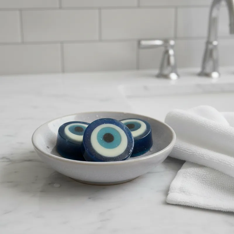 O design do Olho Grego nao é apenas estético, mas também carrega um simbolismo de protecao e boa sorte. Cada barra é cuidadosamente elaborada, refletindo a dedicacao e o amor pela arte de fazer sabonetes. Perfeito para presentear ou para uso pessoal, ele transforma o momento do banho em um ritual de bem-estar.